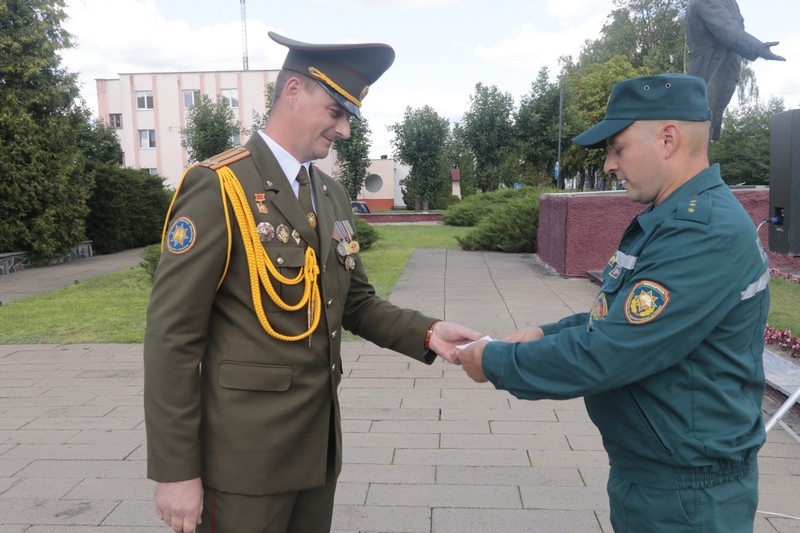 Главный пожарный района вручил сотрудникам отдела заслуженные награды: нагрудного знака МЧС «Выдатнік» удостоен водитель ПАСЧ №1 Сергей Евдокимов; памятного нагрудного знака органов и подразделений по ЧС – водитель ПАСЧ №1 Александр Сачёнок; юбилейной медали органов и подразделений по ЧС – водитель ПАСЧ №1 Виталий Ковалёв. Очередное специальное звание «майор внутренней службы» присвоено старшему инженеру сектора организации функционирования государственной системы предупреждения и ликвидации ЧС и ГО Виталию Романовскому; очередное специальное звание «старший прапорщик внутренней службы» досрочно – старшему инструктору по вождению пожарной машины – водителю ПАСЧ №1 Фёдору Лебедеву.