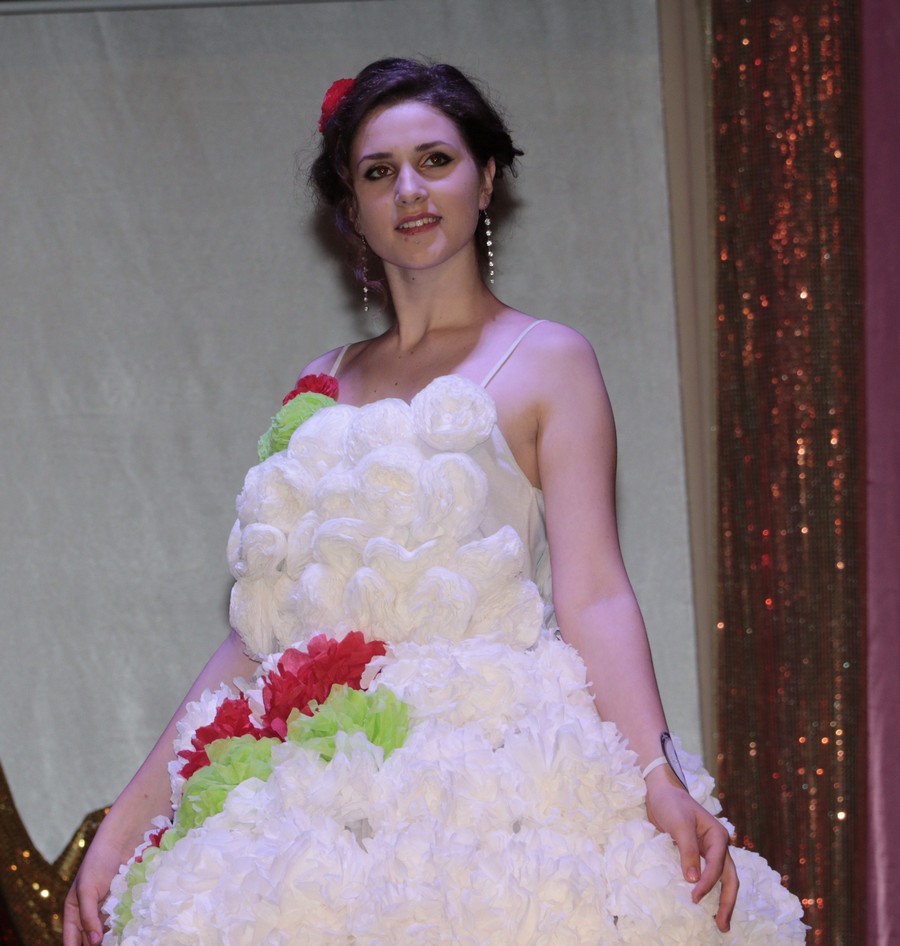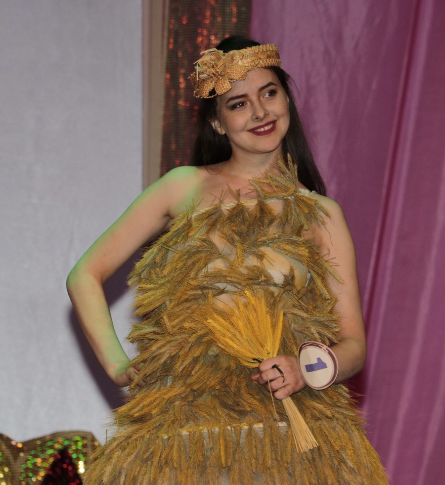 А ў конкурсе “Ствары свой вобраз” жадаючыя заваяваць жаданы тытул пакрэатывілі ад душы — якія толькі падручныя матэрыялы ні выкарысталі, каб зрабіць свае непаўторныя касцюмы: і сена, як Валянціна Цэдрык у вобразе “Жылічанка”, і цэлафанавыя пакеты з кветкамі для вячэрняй сукенкі, як Анастасія Савянкова, і газету “Кіравец”, як Ксенія Сухарава, ды яшчэ з вершам-прызнаннем любімай “раёнцы”. Не саступілі ім і іншыя ўдзельніцы.