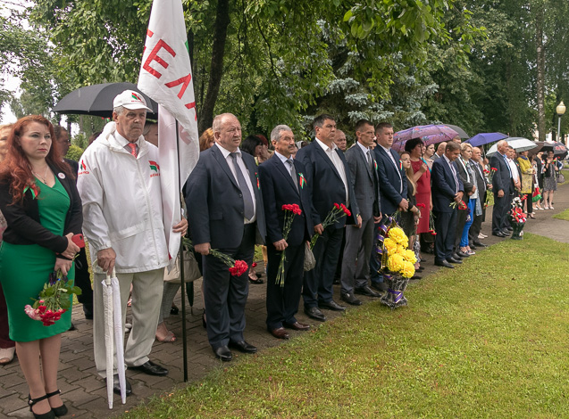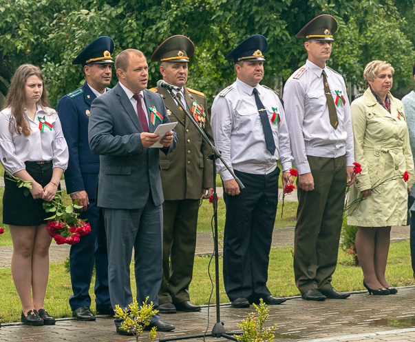 В митинге приняли участие председатель районного исполнительного комитета Михаил Гулый, председатель районного Совета депутатов Галина Слабодникова, члены райисполкома, руководители трудовых коллективов, районных организационных структур общественных объединений, молодежь.
