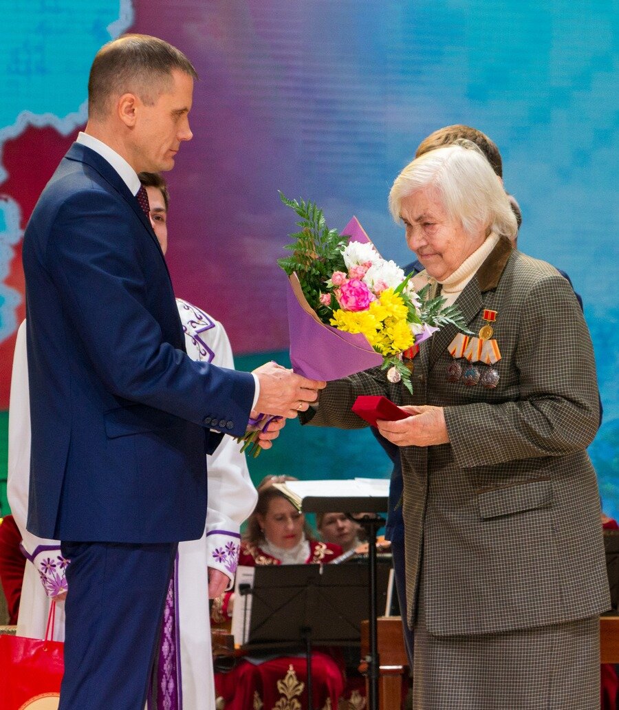 Дзмітрый Харытончык ад імя абласнога выканаўчага камітэта, абласнога Савета дэпутатаў падзякаваў усім, хто сваёй добрасумленнай працай стварае аўтарытэт і славу вобласці. А далей уручыў заслужаным людзям Прыдняпроўскага краю памятныя юбілейныя медалі за шматгадовую, бездакорную працу, вялікі асабісты ўклад у сацыяльна-эканамічнае развіццё Магілёўскай вобласці і ў сувязі са святкаваннем 100-годдзя з дня ўтварэння БССР. У ліку ўзнагароджаных была і наша зямлячка, поўны кавалер ордэна Працоўнай Славы, ганаровы грамадзянін Кіраўскага раёна Людміла Палевіч.