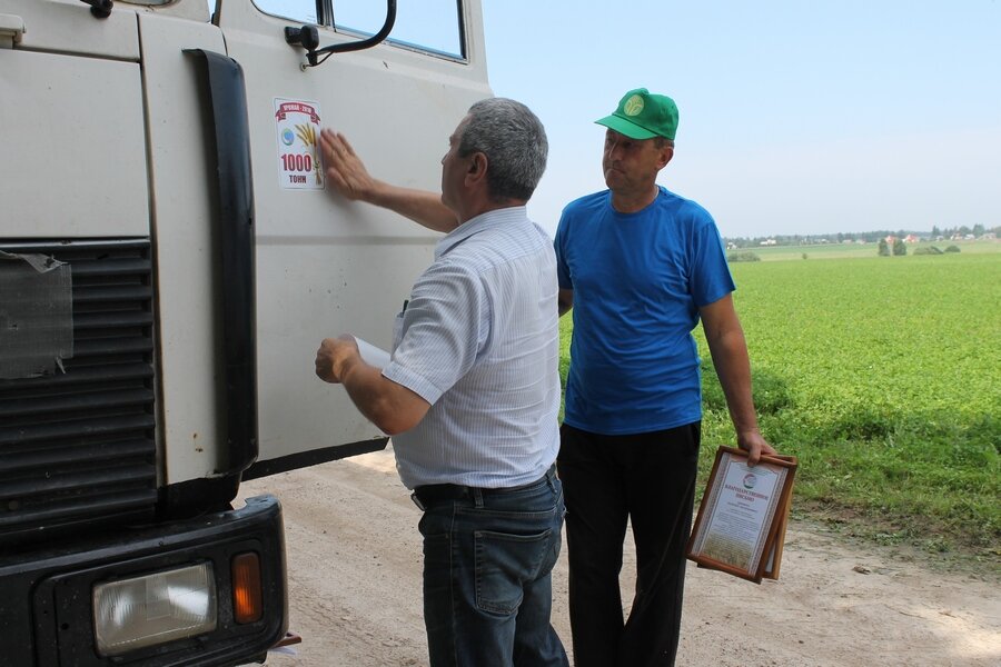 Вадзіцель ААТ “Рассвет імя К.П.Арлоўскага” Валерый Шчэрбіч першым на Магілёўшчыне пераадолеў рубеж у тысячу тон на перавозцы збожжа ад камбайнаў.