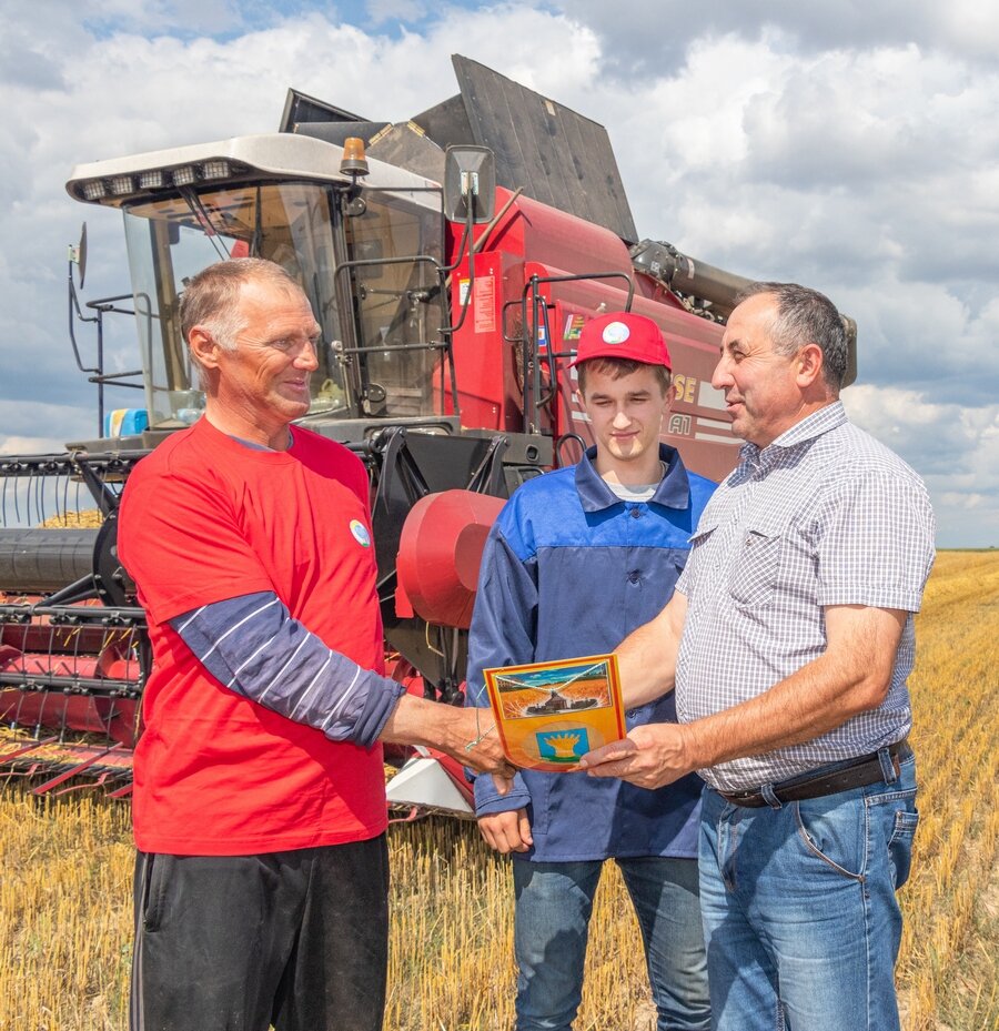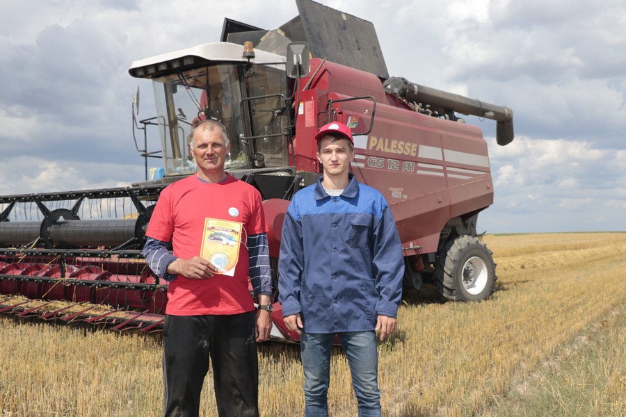 Упраўленнем па сельскай гаспадарцы і харчаванні райвыканкама, райкамам прафсаюза работнікаў АПК, кіраўніцтвам сельгасарганізацый было вырашана ўжо на гэтым этапе стымуляваць перадавых работнікаў. Да іх прама ў поле завіталі выконваючы абавязкі начальніка райсельгасхарчу Анатоль Ланкуць, старшыня райкама прафсаюза работнікаў АПК Віктар Ставер, прадстаўнікі кіраўніцтва і старшыні прафкамаў “Рассвета” і “Чырвонага байца”. За дасягнутыя рэзультаты Івану Барысёнку і Дзмітрыю Аляксееву былі ўручаны грашовыя прэміі, чырвоныя майкі і кепкі лідараў жніва, а таксама прафсаюзная сімволіка: вымпелы і наклейкі, якія ўпрыгожылі кабіны машын флагманаў працоўнага спаборніцтва-2019.
