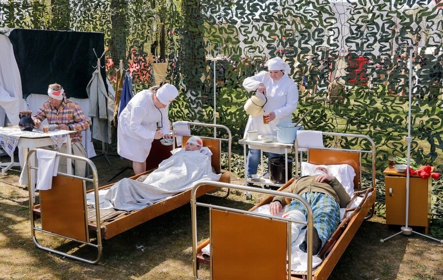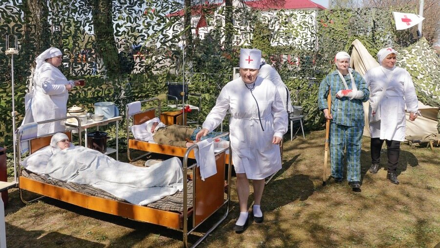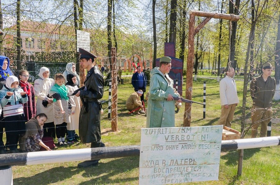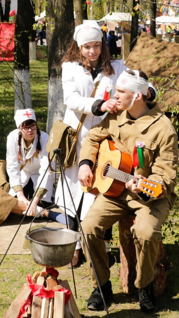 Каля галоўнай плошчы горада былі разгорнуты тэматычныя тэатралізаваныя пляцоўкі “Жывая сцяна памяці”: увасобленыя на іх эпізоды Вялікай Айчыннай вайны краналі душу кожнаму, прымушалі перажываць тыя падзеі.
