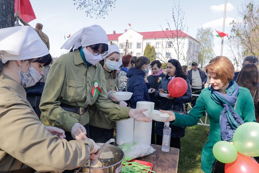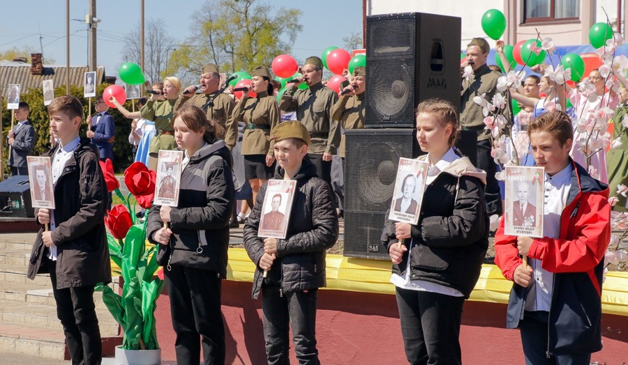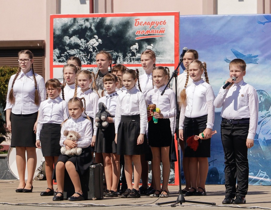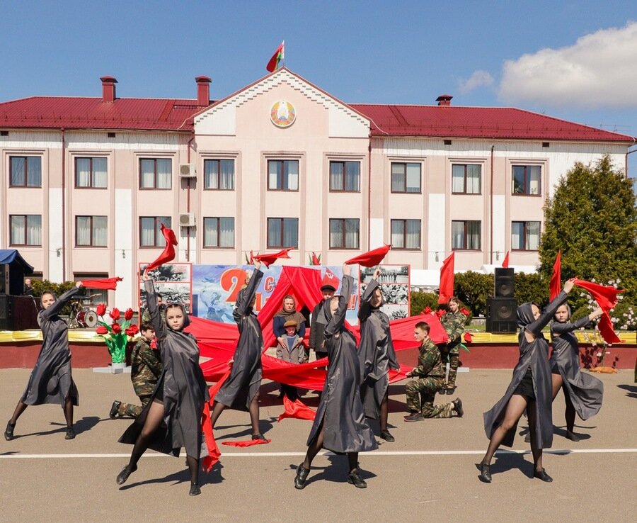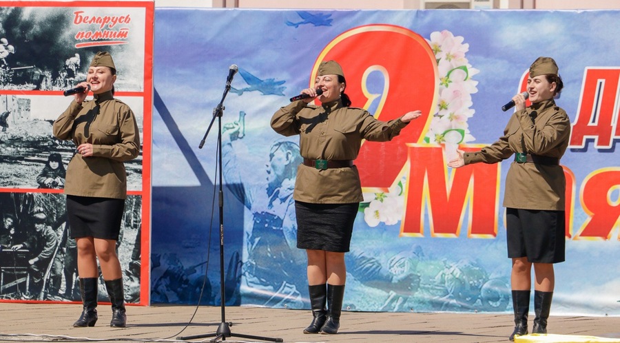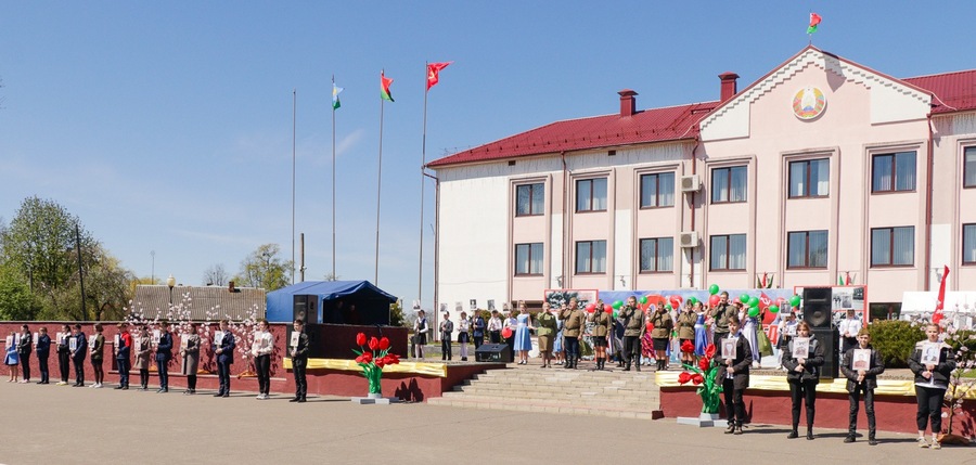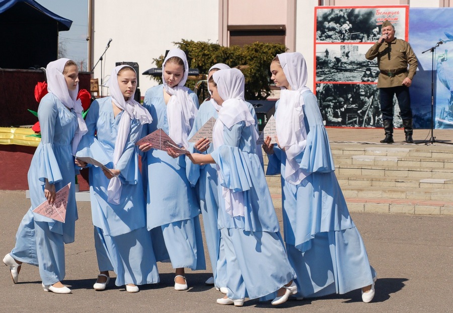 Нібы кадры кінафільма, на сцэне змяняліся карціны з гадоў ваеннага ліхалецця, якія кранальна адлюстравалі культработнікі, самадзейныя артысты раёна, а таксама школьнікі, моладзь – нашчадкі салдат Перамогі. Гучалі знаёмыя ўсім ваенныя песні, іграў духавы аркестр.