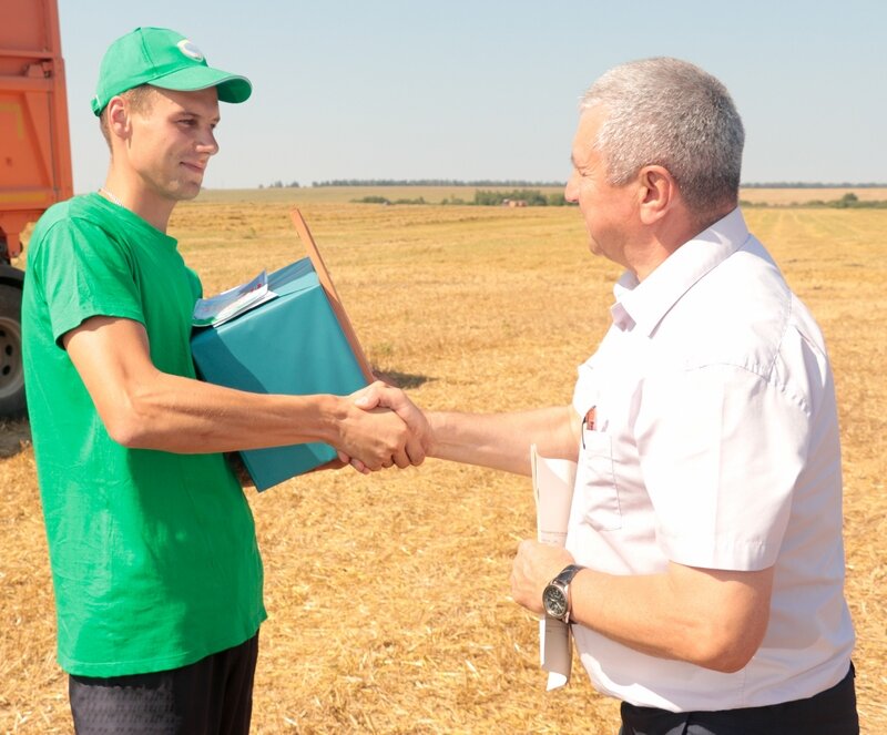 Сегодня в поле Владислав принимал поздравления и подарки от председателя Кировского райисполкома Галины Слабодниковой, ее заместителя Татьяны Белявской, председателя райкома профсоюза работников АПК Виктора Ставера, директора ОАО «Рассвет им. К.П.Орловского» Александра Багеля. Галина Слабодникова отметила, что Владислав Шапоткин – очень старательный и ответственный работник, который своим усердием и дисциплинированностью подает пример другим хлеборобам, и, что самое важное, молодым коллегам по цеху. Такие труженики, как он, вносят весомый вклад в развитие хозяйства, района и обеспечение продовольственной безопасности страны в целом.