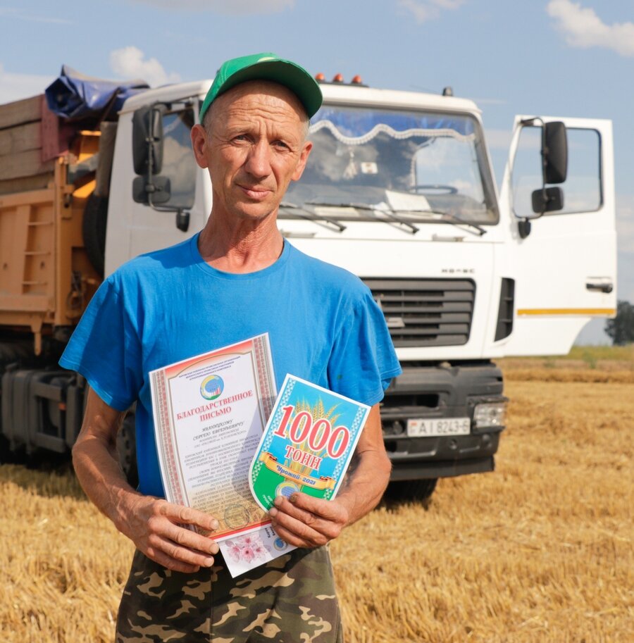 Заслужаныя ўзнагароды – Падзячнае пісьмо райкама прафсаюза работнікаў АПК і каштоўны падарунак за 1000 т перавезенага збожжа – атрымаў і вадзіцель ААТ “Дабаснянскае” Мікалай Асташоў. Іх уручылі Віктар Ставер і Таццяна Бяляўская.