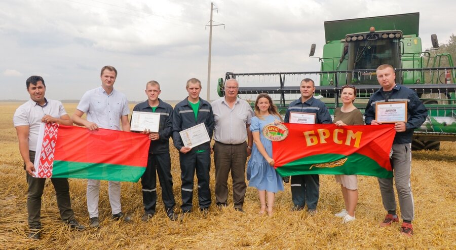Днямі раней на рассветаўскія палеткі завіталі ганаровыя госці з абласнога цэнтра – першы сакратар Магілёўскага абласнога камітэта ГА “БРСМ” Уладзімір Паўлоўскі і загадчык аддзела праграмнай і арганізацыйна-кадравай работы абкама Алег Бойка, а таксама начальнік аддзела ідэалагічнай работы, культуры і па справах моладзі райвыканкама Ларыса Гаўрылава і першы сакратар РК ГА “БРСМ” Вікторыя Пяўнёва. У рамках рэспубліканскага праекта ГА “БРСМ” “Моладзь за ўраджай!” яны ўшанавалі маладзёжныя збожжаўборачныя экіпажы, якія дасягнулі найвышэйшых намалотаў: Андрэя і Сяргея Драздоў і Максіма Юркаўца і Івана Калеева з ААТ “Рассвет імя К.П.Арлоўскага”.