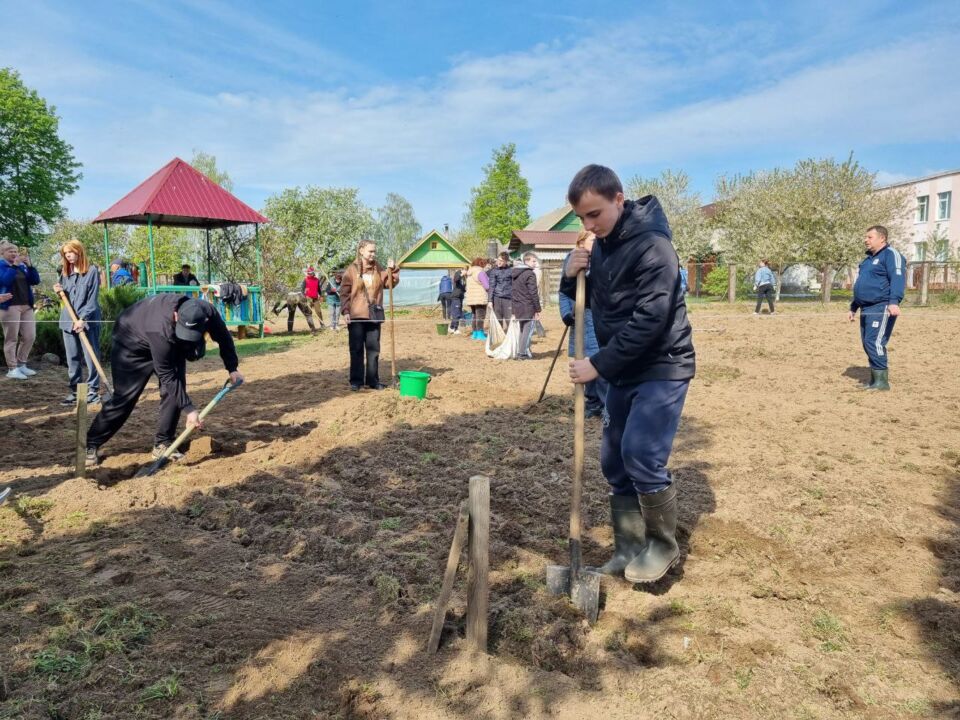 У сярэдняй школе №2 імя К.П.Арлоўскага добраўпарадкоўвалі тэрыторыю, праводзілі падрыхтоўчыя работы для пасадкі яблыневага сада ў гонар 80-годдзя Вялікай Перамогі работнікі Цэнтра па абслугоўванні бюджэтных арганізацый, УКП «Жылкамгас», Мышкавікага сельсавета і ўстановы адукацыі.