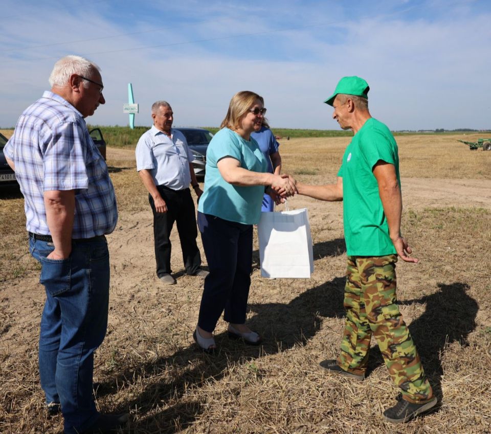 Герояў Жніва-2024 са значным працоўным дасягненнем павіншавалі старшыня райвыканкама Галіна Слабоднікава, члены Савета Рэспублікі Нацыянальнага сходу Рэспублікі Беларусь: дырэктар ААТ...