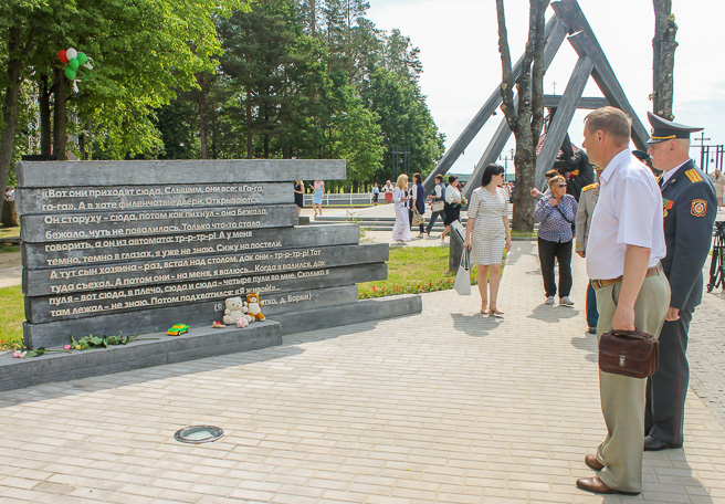 Пасля цырымоніі адкрыцця мемарыяльнага комплексу “Памяці спаленых вёсак Магілёўскай вобласці” ў в.Боркі Кіраўскага раёна журналіст раённай газеты “Кіравец” Наталля Хадакова...