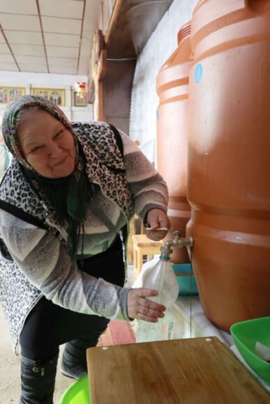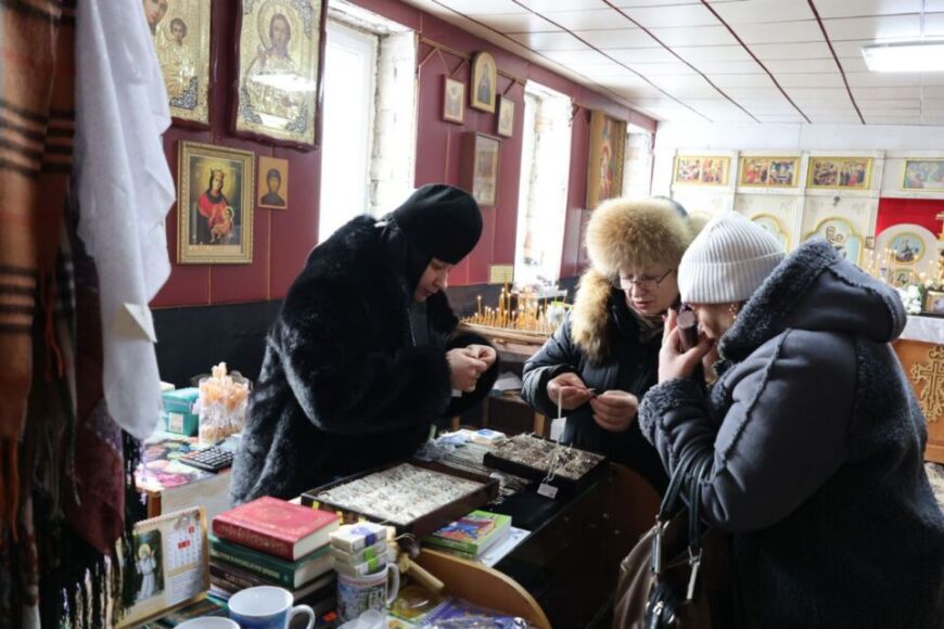 С самого утра многолюдно в храме в честь иконы Божией Матери «Спорительница хлебов». Православные верующие спешат за освящённой водой.