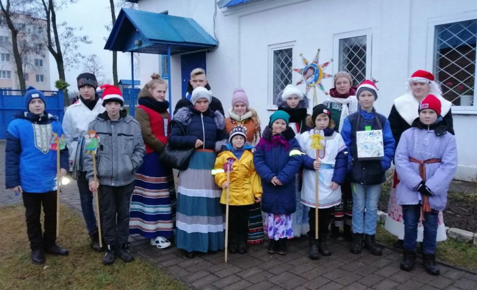 9 января Илона Манько и Ксения Громова вместе с преподавателем воскресной школы наведались в аг.Мышковичи, где размещается Кировский центр коррекционно-развивающего обучения и реабилитации для детей-инвалидов. Они исполнили колядные песни и передали детям подарки, собранные в ходе приходской рождественской акции «Краски добра».