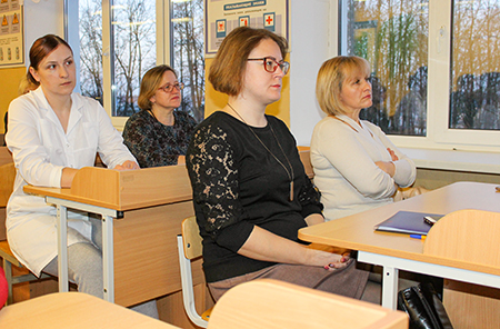 У межах лютаўскага адзінага дня інфармавання інфармацыйна-прапагандысцкая група на чале са старшынёй райвыканкама Міхаілам Гулым правяла сустрэчу з калектывам педагогаў і тэхнічных работнікаў СШ №2 імя К.П.Арлоўскага.
