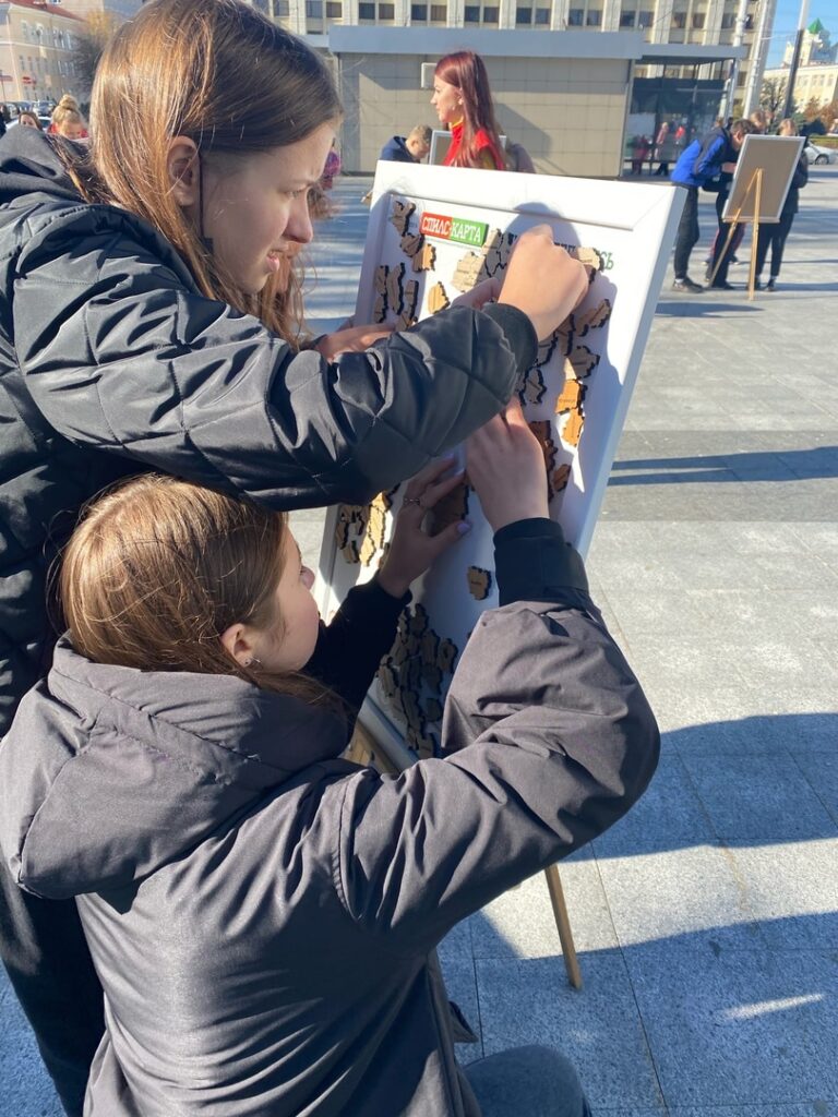 Девушки объединились в команду, которую назвали «Кировчанки» и по результатам соревнований отмечены дипломом Могилевского ОК ОО «БРСМ» в категории «Учащиеся учреждений общего среднего образования». Главной задачей было правильно за наименьшее время собрать карту Беларуси, состоящую из магнитных игровых элементов, имеющих визуальную форму географических границ районов Беларуси. Сборка спилс-карт – это весьма увлекательное занятие, которое требует определенных знаний по географии страны.