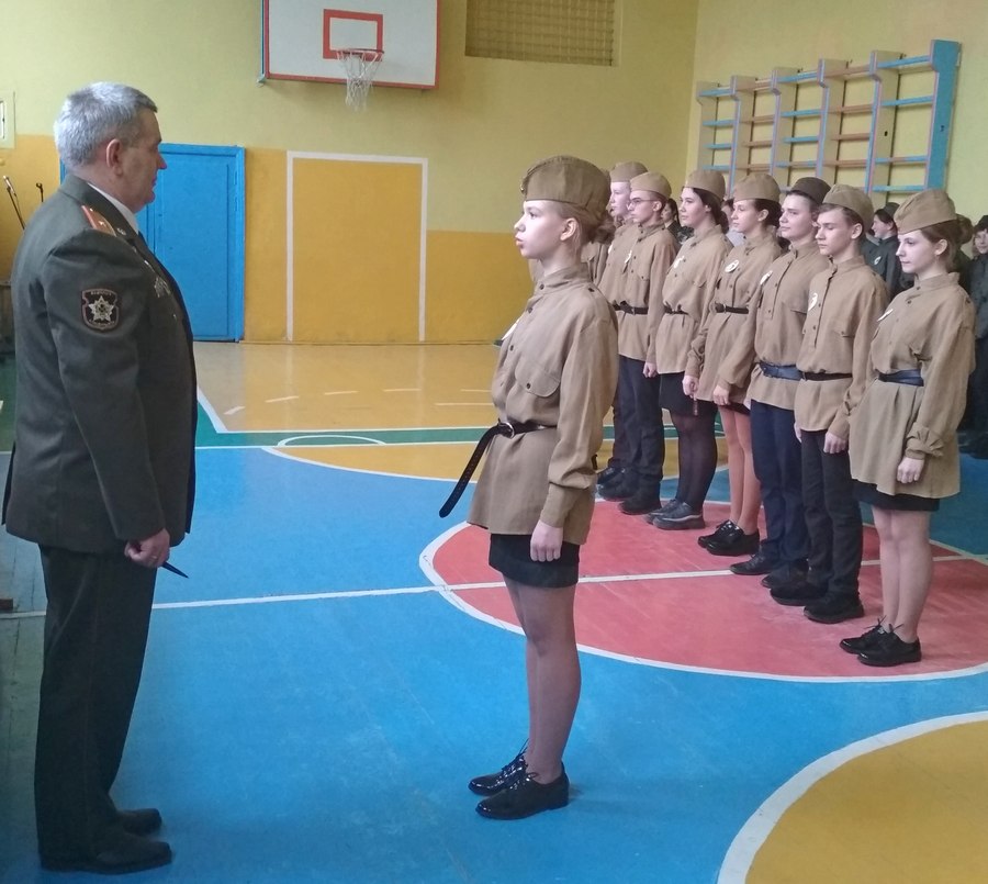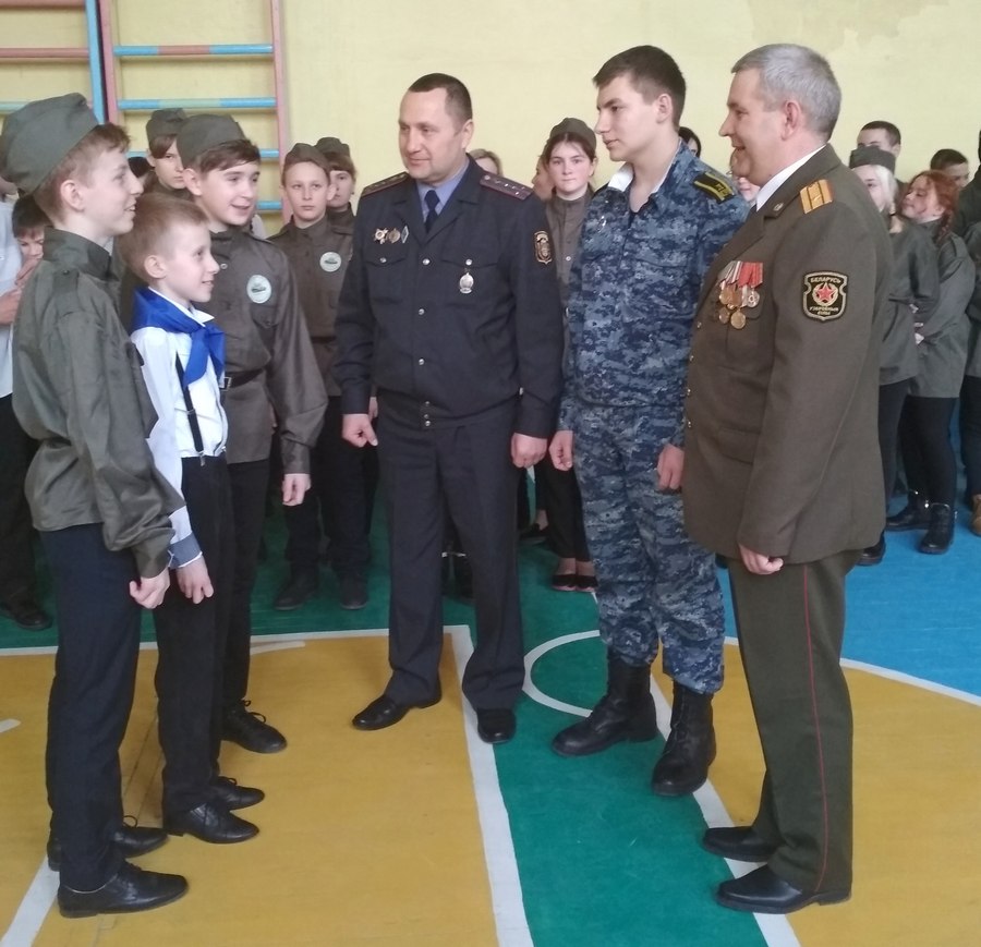 Накануне Дня защитников Отечества в СШ №2 им.К.П.Орловского прошел традиционный конкурс «Смотр строя и песни». Членами жюри и спонсорами мероприятия стали почетные гости: начальник обособленной группы (по Кировскому району) военного комиссариата г.Бобруйска, Бобруйского, Глусского и Кировского районов Андрей Гайдукевич (председатель жюри), начальник Кировского отделения Департамента охраны МВД Республики Беларусь Александр Пинчук, председатель межрайонной организационной структуры ДОСААФ Сергей Максименко и курсант лицея МВД Республики Беларусь Никита Пинчук.
