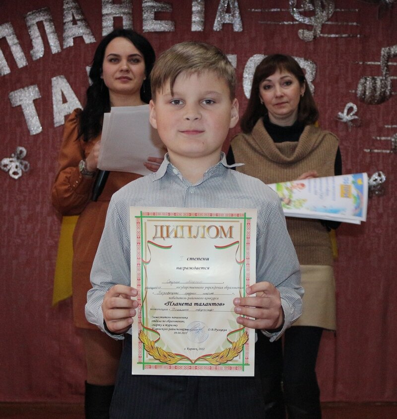 Диплом 1 степени – Яна Лисовская СШ №2 им. К.П.Орловского; Максим Ступак Боровицкая СШ; Карина Касперович СШ №2 им. К.П.Орловского; Анастасия Зайцева СШ №2 им. К.П.Орловского: Божена Курбыко СШ №2 им. К.П.Орловского; Дарина Стерлингова ясли-сад №4;