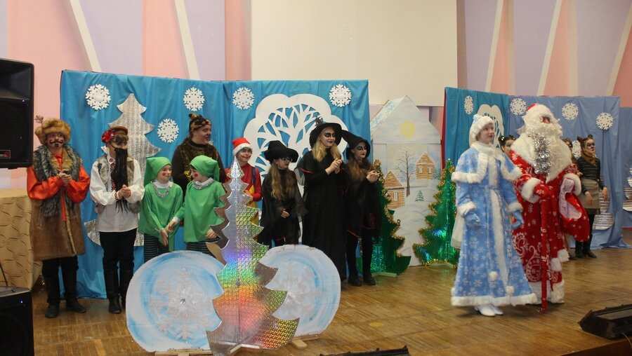 На сцене разыгралось занимательное действо, которое увлекло зал, с Дедом Морозом и Снегурочкой, другими интересными персонажами, которые никому не давали скучать. Были здесь и волшебные превращения, и лесные приключения. Как всегда, злые силы пытались сорвать новогодний праздник, им противостояли добрые персонажи, которые, конечно же, победили!