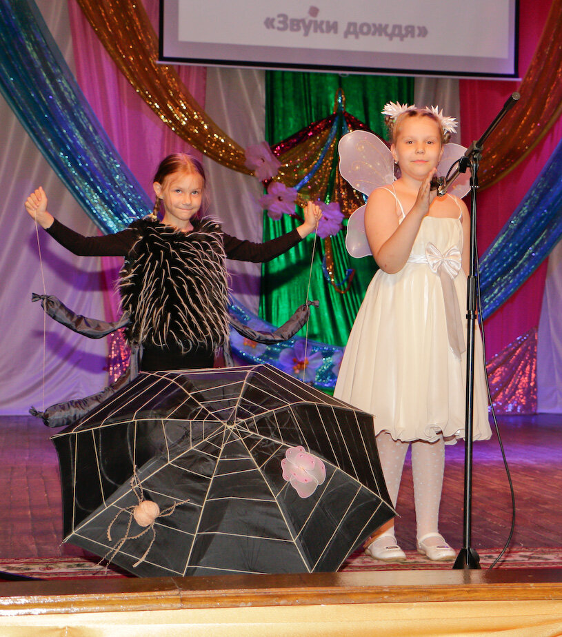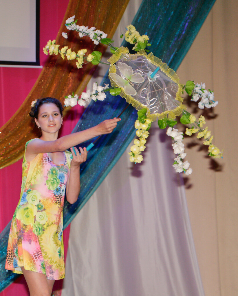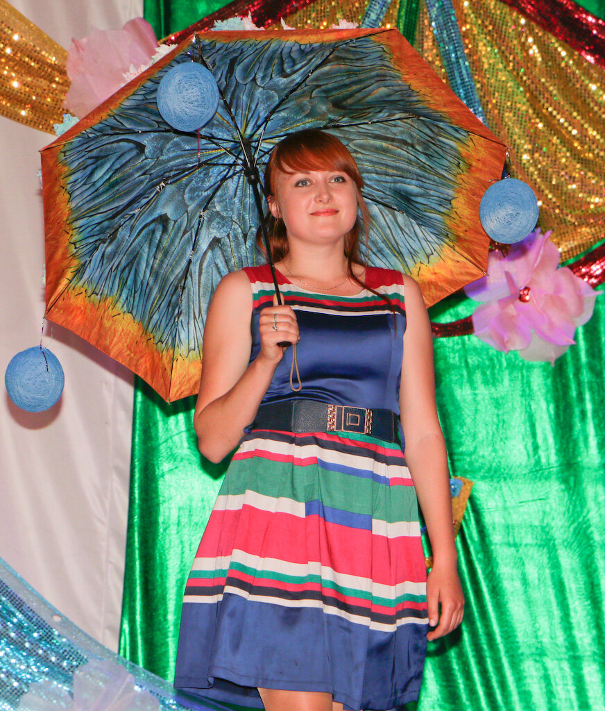 Затем свою радугу идей, дефилируя по сцене, показали участники фестиваля, с выдумкой и фантазией подошедшие к созданию рукотворных шедевров. Их мастерство и талант не имели границ: обилие цветов и фактур, разнообразная тематика нашли отражение в украшении зонтиков.