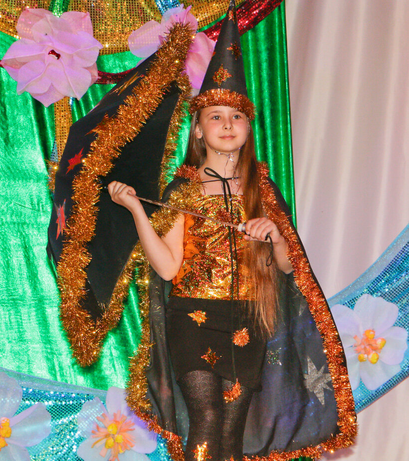 Цветочные клумбы и лесные полянки из сатина, цветной бумаги, фантиков, воздушных шаров, кружева расцветили сцену РДК всевозможными яркими красками. Смелому и необычному полету идей не было предела.