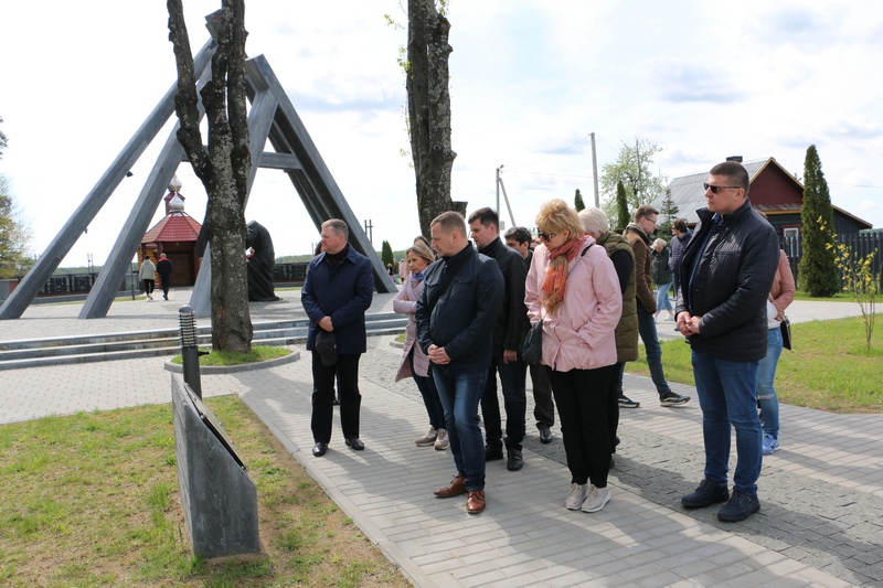 Делегация, в состав которой входило более 35 человек, побывала на мемориальном комплексе «Памяти сожженных деревень Могилевской области» в д.Борки. Для гостей из столицы была организована экскурсия по мемориальному комплексу, они возложили цветы к композиции «Беларусь – скорбящая мать», поставили поминальные свечи в часовне иконы Божьей Матери «Взыскание погибших».