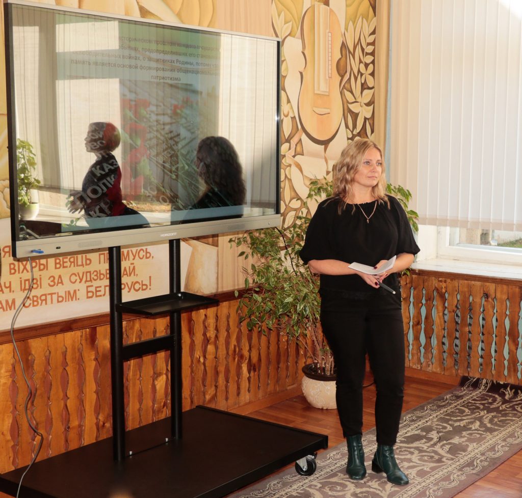 Учитель истории СШ №2 им. К.П.Орловского Валентина Яскевич поговорила с молодежью о роли Республики Беларусь в сохранении мира: «На территории Беларуси проходило множество войн. Мы, белорусы, очень натерпелись от различных боевых действий. Только во время Великой Отечественной войны погиб каждый третий белорус. Не может народ, который понес такие огромные потери, не быть миролюбивым».