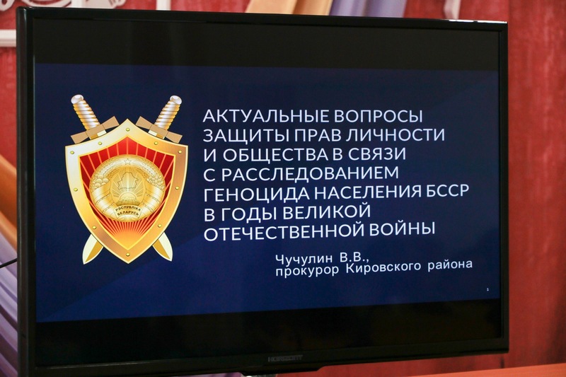 Прокурор Кировского района Вячеслав Чучулин представил презентацию «Актуальные вопросы защиты прав личности и общества в связи с расследованием геноцида населения БССР в годы Великой Отечественной войны».