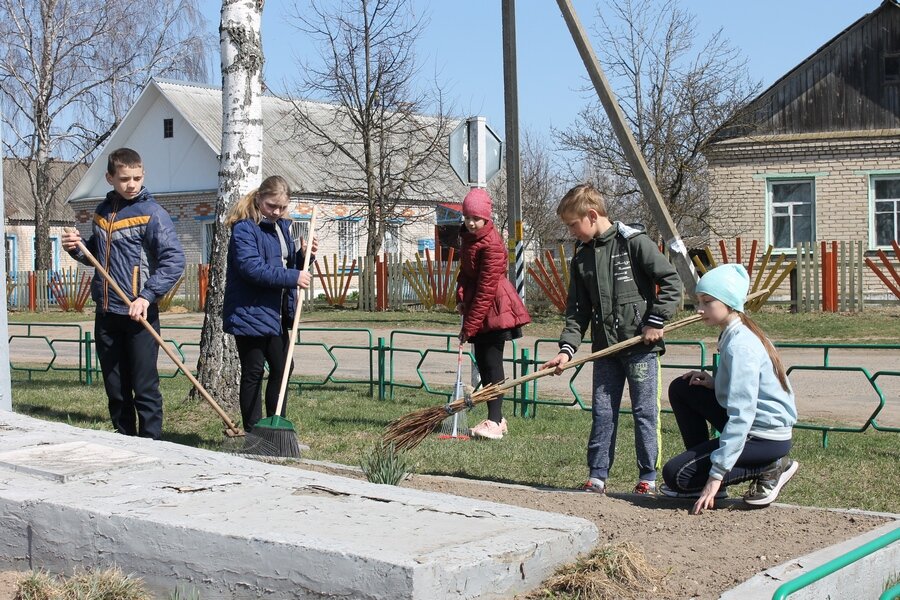 Посильную помощь в наведении порядка и благоустройстве населенных пунктов оказывают школьники. Особое внимание учащихся направлено на приведение в надлежащее состояние памятников, братских могил и иных захоронений воинов, погибших во время Великой Отечественной войны.
