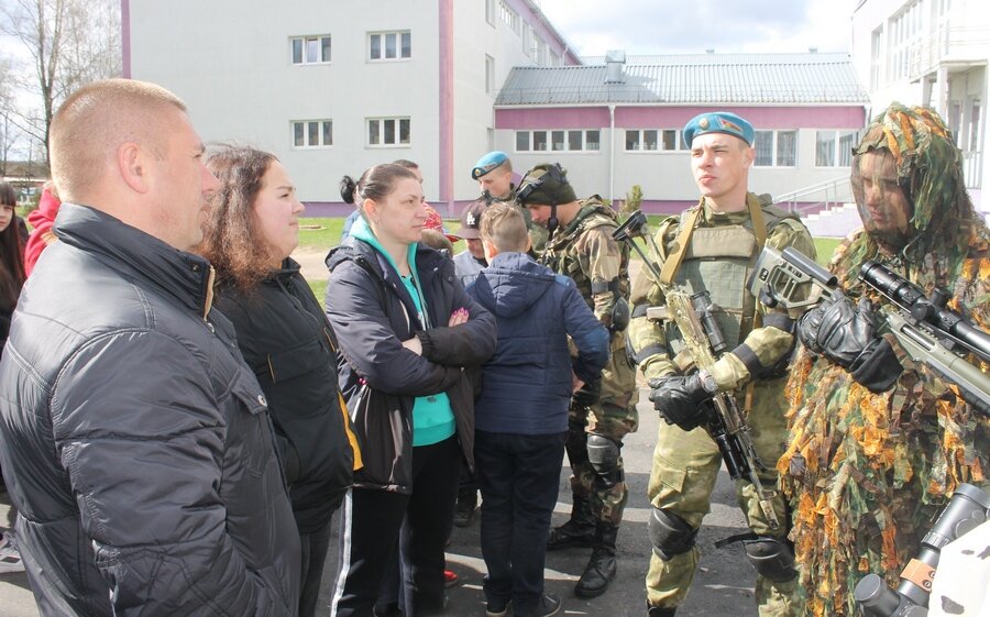 На школьном стадионе, где проходила встреча, о предназначении бригады, задачах, над выполнением которых работает ее личный состав, школьникам рассказал офицер подразделения. Ребята узнали о том, что 5-я отдельная бригада спезназа по праву считается одним из элитных соединений Вооруженных Сил Беларуси и входит в состав сил специальных операций армии нашей страны. Это настоящая кузница кадров отважных десантников, которым подвластны и небо, и земля, и огонь, и вода. Именно здесь закаляют волю и растят мускулы, учат преодолевать любые препятствия, прыгать с парашютом, метко стрелять, владеть разными видами оружия, побеждать врага при любых обстоятельствах, воспитывают настоящих мужественных патриотов и защитников Родины.