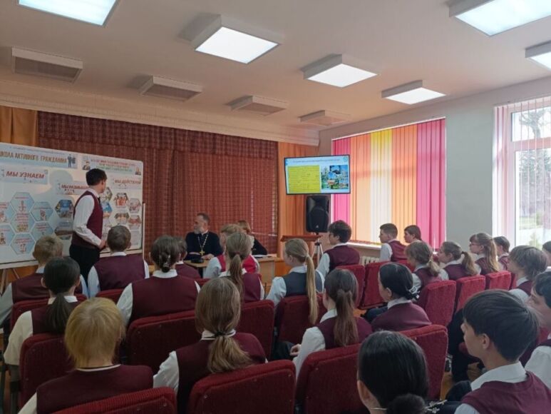 Участником открытого диалога был отец Алексей, настоятель Храма Святой Живоначальной Троицы. Он поделился с ребятами своими мыслями о значении духовных скреп в жизни человека, о важности уважения к истории своего народа, своим корням и традициям.