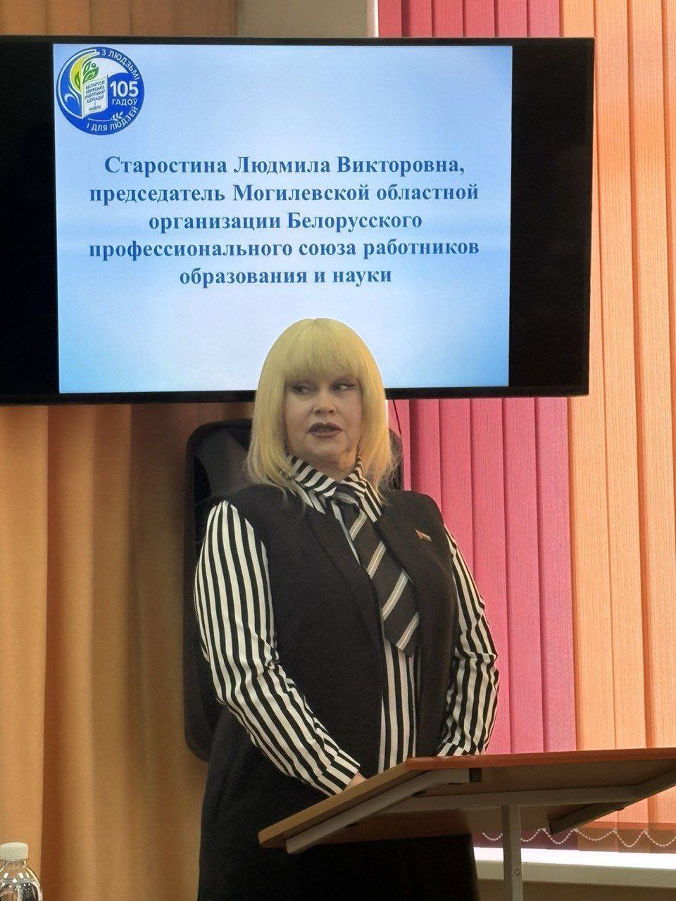 В работе собрания первичной профсоюзной организации Мышковичской средней школы приняла участие Людмила Старостина, председатель Могилевской областной организации Белорусского профессионального союза работников образования и науки.