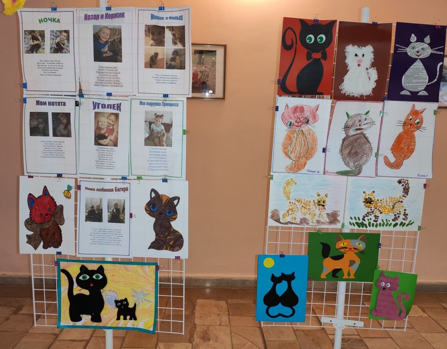 В фойе учреждения была организована общая фотовыставка «Мой маленький друг», выставка детских рисунков и поделок «Кисонька-мурысенька».