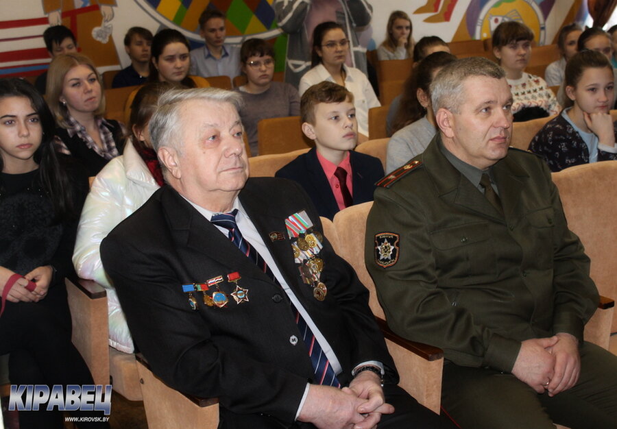 Мероприятия, посвященные военно-патриотическому воспитанию детей и подростков в районном Центре культуры и досуга проходят традиционно, в преддверии Дня памяти воиновинтернационалистов. На встречу с учащимися школ райцентра пришли начальник обособленной группы Кировского района Бобруйского объединения городского военного комиссариата Андрей Гайдукевич и воин-интернационалист Николай Подъяловский.