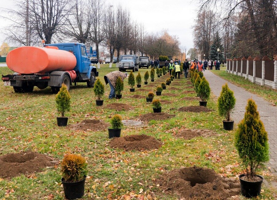 Высадка туй была произведена и по центральной улице города – им.Кирова.