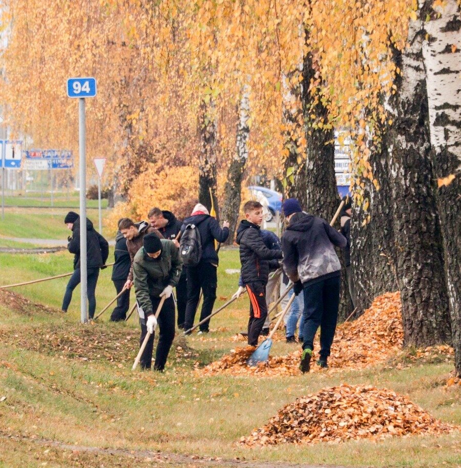 Уборкой веток, опавших листьев по ул.Гагарина занимались учителя и учащиеся СШ №1 и СШ№2 им. К.П.Орловского.