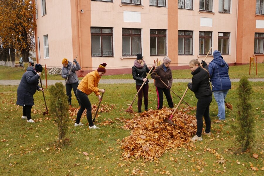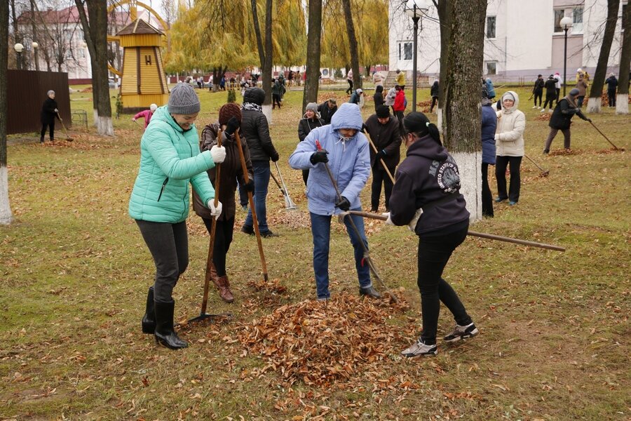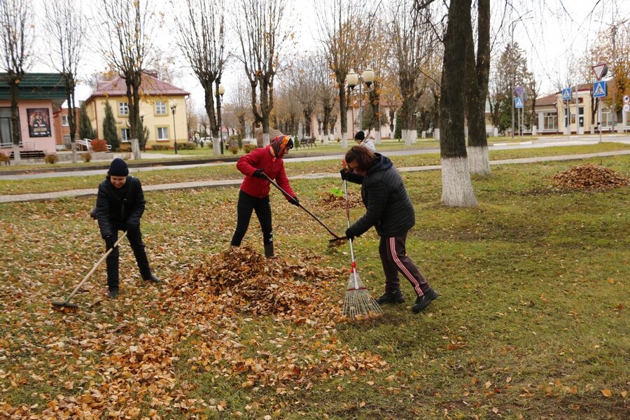 Проводилась уборка осенней листвы, мусора в общественных местах. Так, работы кипели на территории городского парка: около РДК, где, в том числе, уделили внимание детским площадкам, а также около здания райЦГЭ.