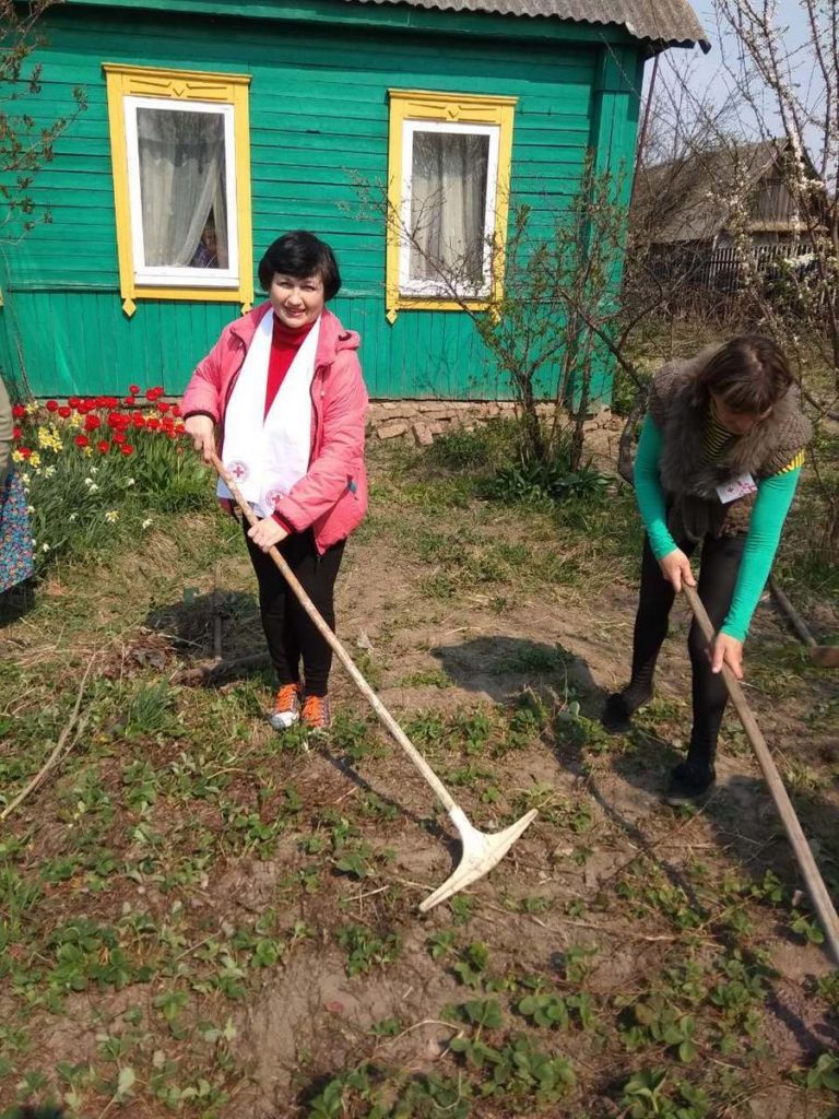 Как рассказала председатель Кировской районной организации Белорусского Общества Красного Креста Наталья Финевич, недавно специалисты управления по сельскому хозяйству и продовольствию Кировского райисполкома, волонтеры Кировской районной организации Белорусского Общества Красного Креста, участники отделения дневного пребывания для инвалидов и граждан пожилого возраста Кировского районного центра социального обслуживания населения, учащиеся филиала «Кировский государственный профессиональный лицей» Жиличского сельхозколледжа провели совместную акцию помощи ветерану Великой Отечественной войны Зинаиде Кузьминичне Акушевич по уборке прилегающей территории к домовладению. Акция прошла под девизом «Здесь живет ветеран».