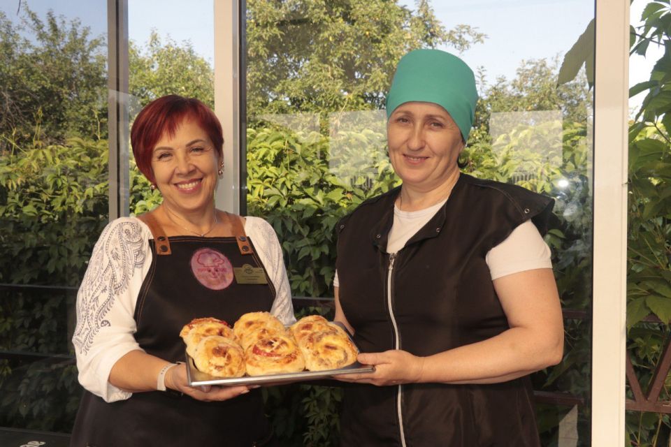 Елена Стринадко отметила, что сейчас в кафе трудится 16 человек. Коллектив – дружный и слаженный, каждый работает на совесть, иначе трудно было бы справиться с таким потоком покупателей! Сама Елена Семёновна работает в системе общепита Кировского райпо 35 лет, последние 8 – возглавляет коллектив «Смаженки».