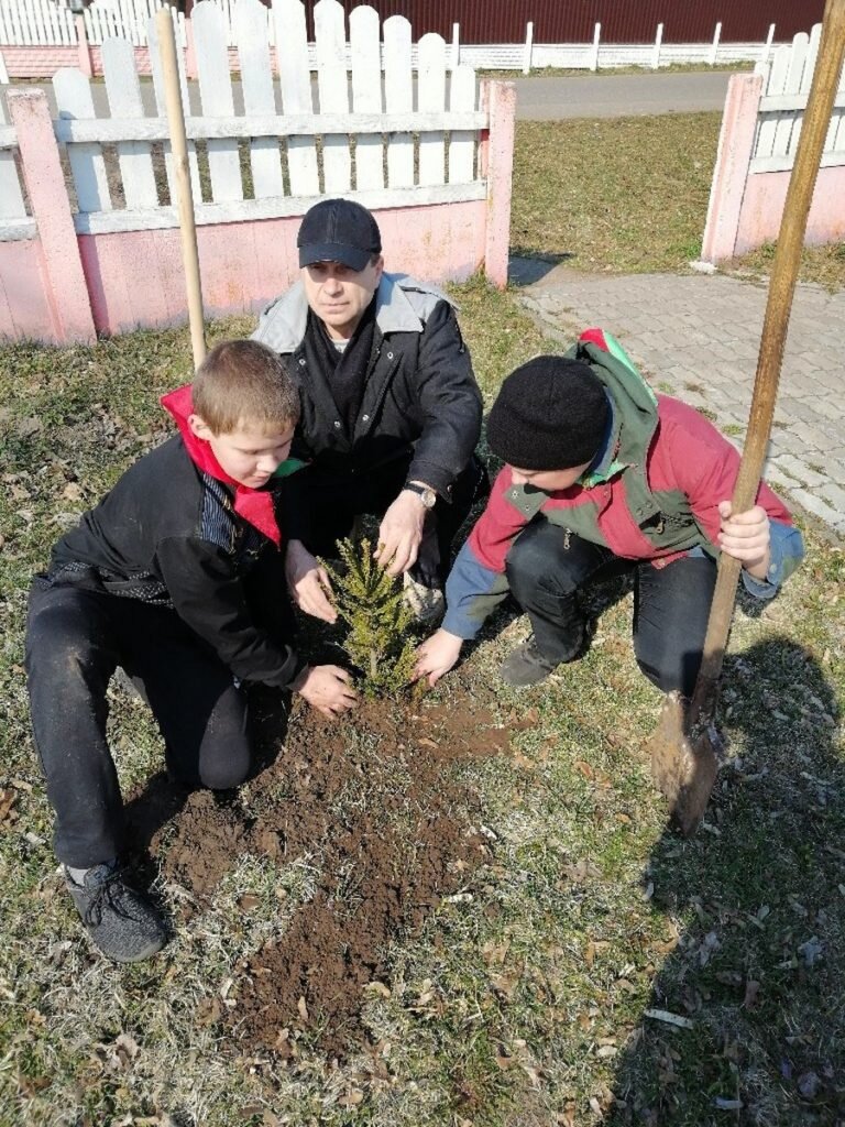 Под руководством автора этих строк и первого секретаря райкома ОО «БРСМ» Олега Бойко учащиеся посадили 20 саженцев лиственниц, елей, каштанов. Усердно и задорно трудились ребята. Руководители объяснили детям и наглядно показывали, как правильно выкапывать лунку, помещать в нее саженец, так, чтобы он мог расти и развиваться в полную силу.