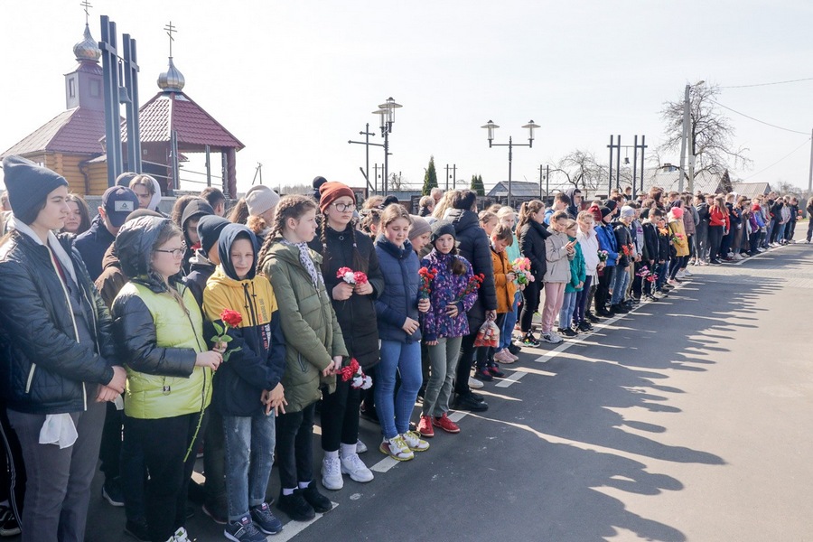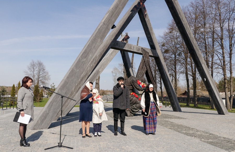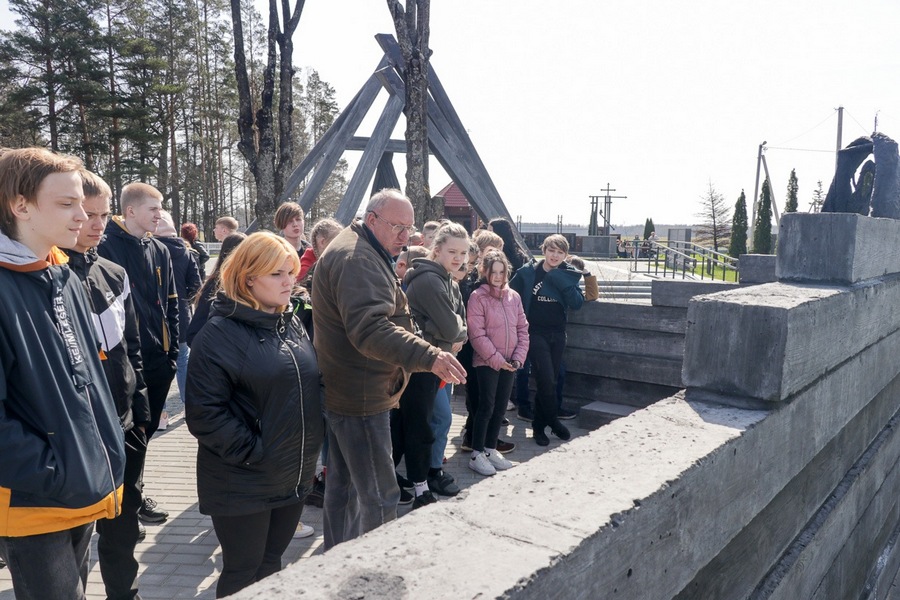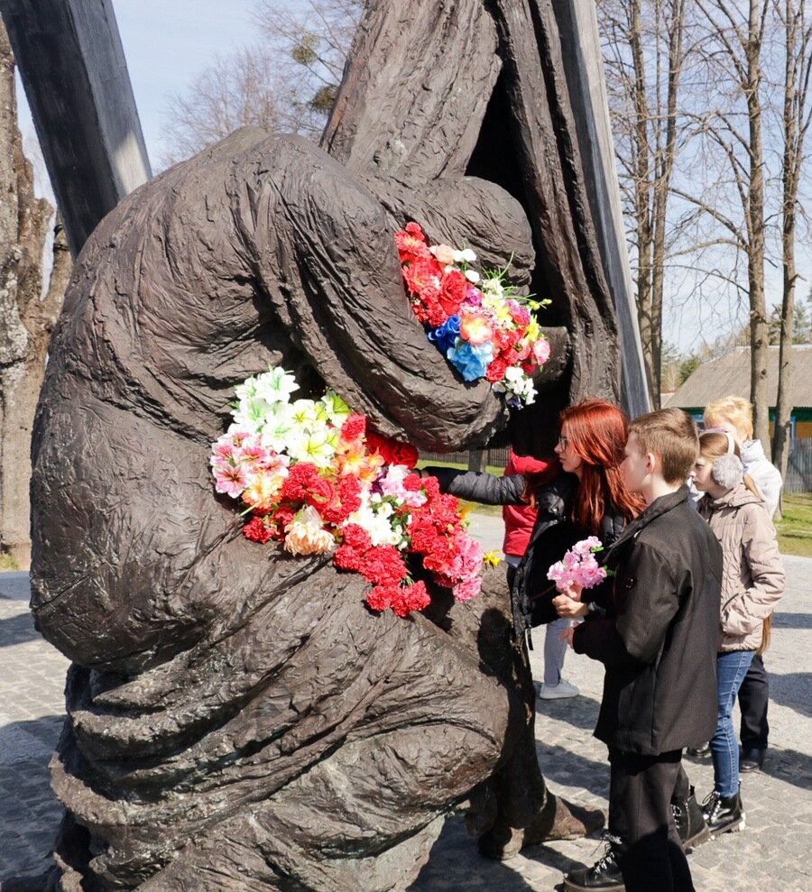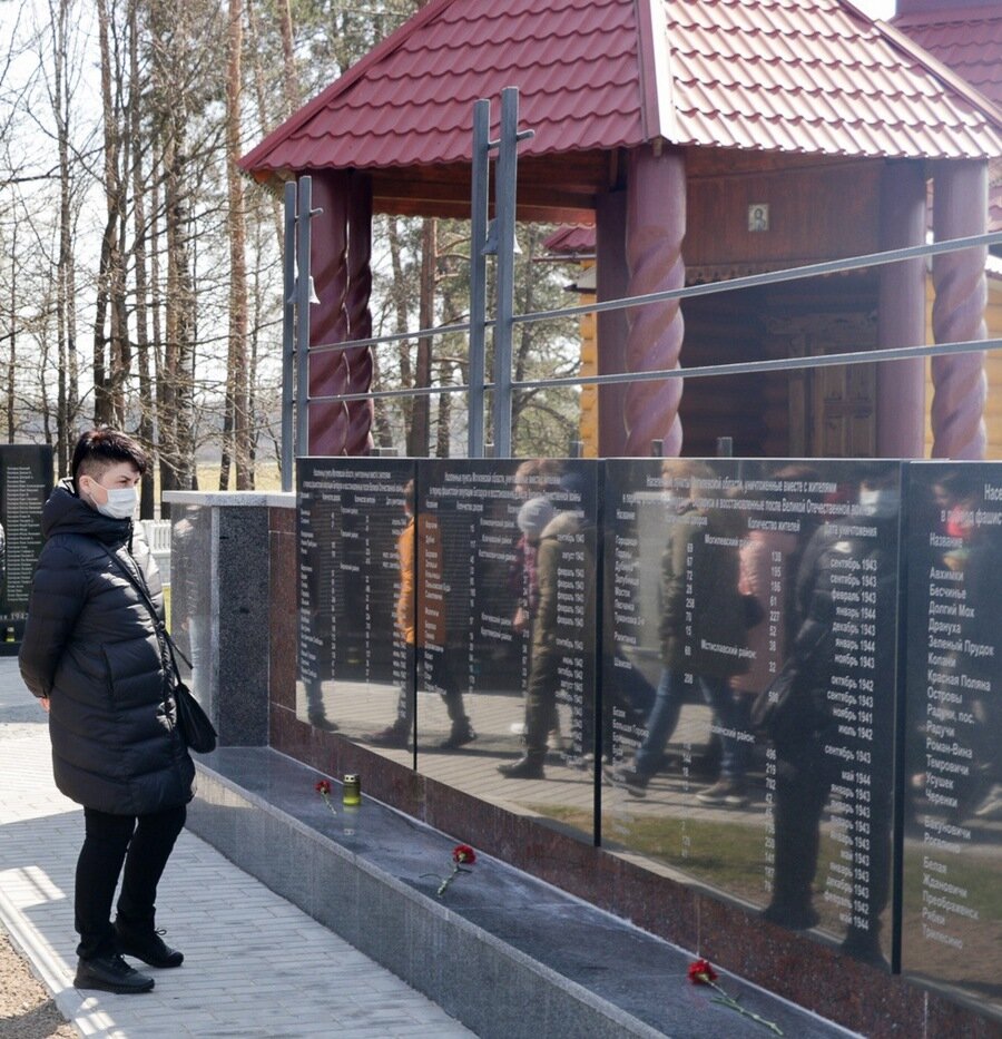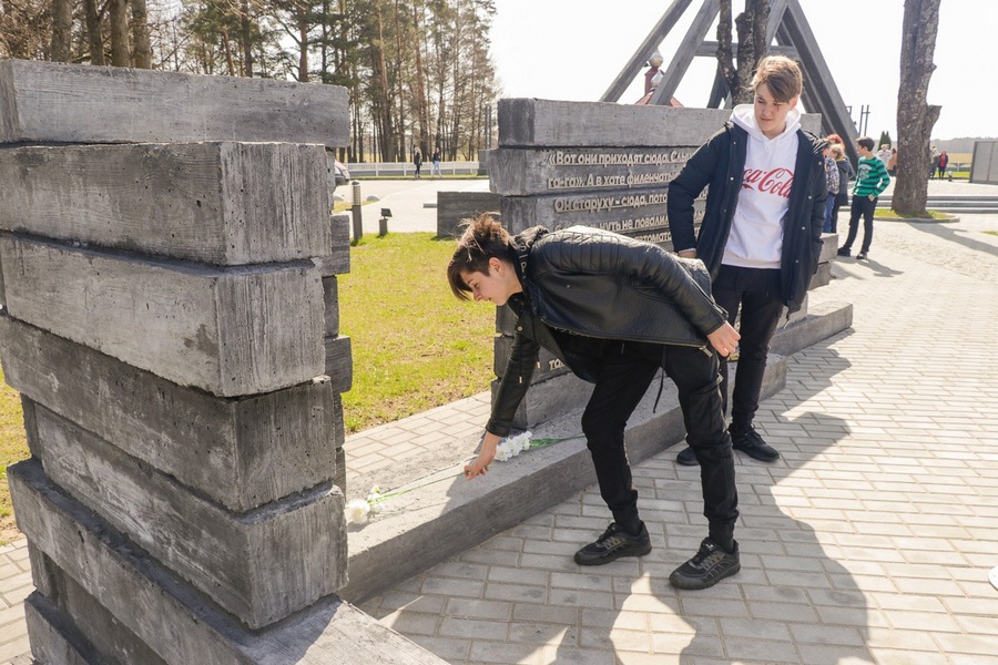 Участники проекта возложили цветы к скульптурной композиции «Беларусь – скорбящая мать» и почтили память погибших от рук фашистских карателей местных жителей минутой молчания.