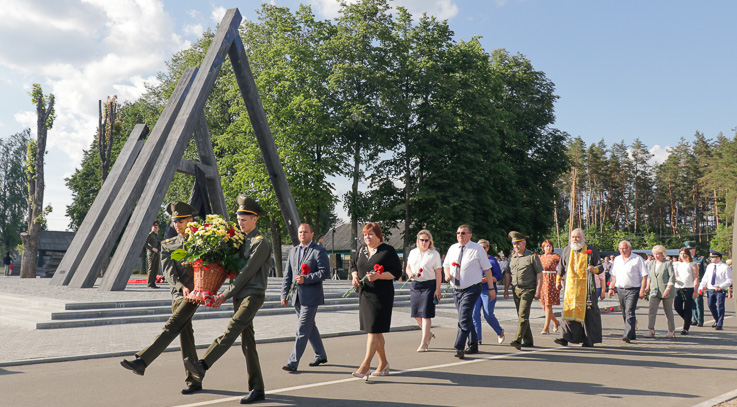 Михаил Гулый привел слова Главы государства Александра Григорьевича Лукашенко, сказанные во время открытия мемориального комплекса «Памяти сожженных деревень Могилевской области» в июне прошлого года: «Каждые новые поколения белорусов мы будем растить, передавая им память не только о подвигах их предков, но и о боли‚ которая сделала наш народ сильнее, научила беречь мир, спокойствие. Беларусь будет помнить, чтобы и другие страны не забывали, кто заплатил за Великую Победу самую большую цену, освободил завоеванные гитлеровской Германией земли и спас народы от геноцида».