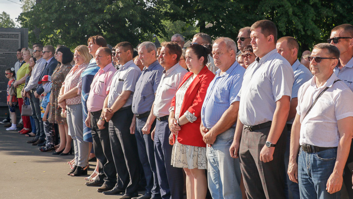 В митинге-реквиеме приняли участие председатель райисполкома Михаил Гулый, председатель районного Совета депутатов Галина Слабодникова, председатель Могилевского областного отделения Союза писателей Беларуси Александр Казеко, делегации трудовых коллективов, представители районных структур общественных объединений, духовенства, молодежь.