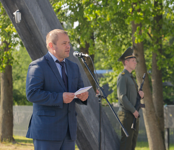 Обращаясь к присутствующим, глава района Михаил Гулый отметил, что Великая Отечественная война оставила много мест скорби на нашей белорусской земле. Сотни деревень и поселков были варварски уничтожены гитлеровскими захватчиками. В огне войны сгорели жизни и судьбы каждого третьего белоруса.