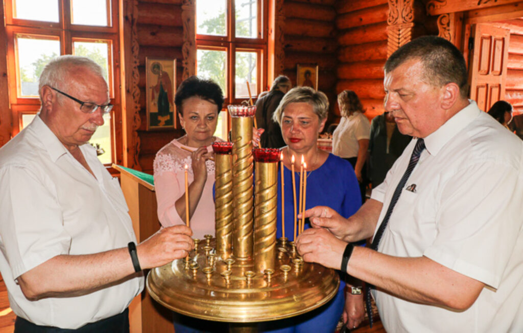 Траурную заупокойную литию по сожженным жителям д.Борки отслужил настоятель Свято-Покровского храма протоиерей Димитрий Первий. Все желающие поставили свечи в часовне в честь иконы Божией Матери «Взыскание погибших».