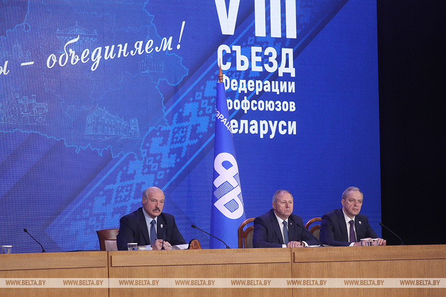 Белорусский народ выбрал путь социального диалога, и в стране не раз убеждались в его разумности и перспективности. Об этом Президент Беларуси Александр Лукашенко заявил сегодня на VIII съезде Федерации профсоюзов Беларуси, передает корреспондент БЕЛТА.