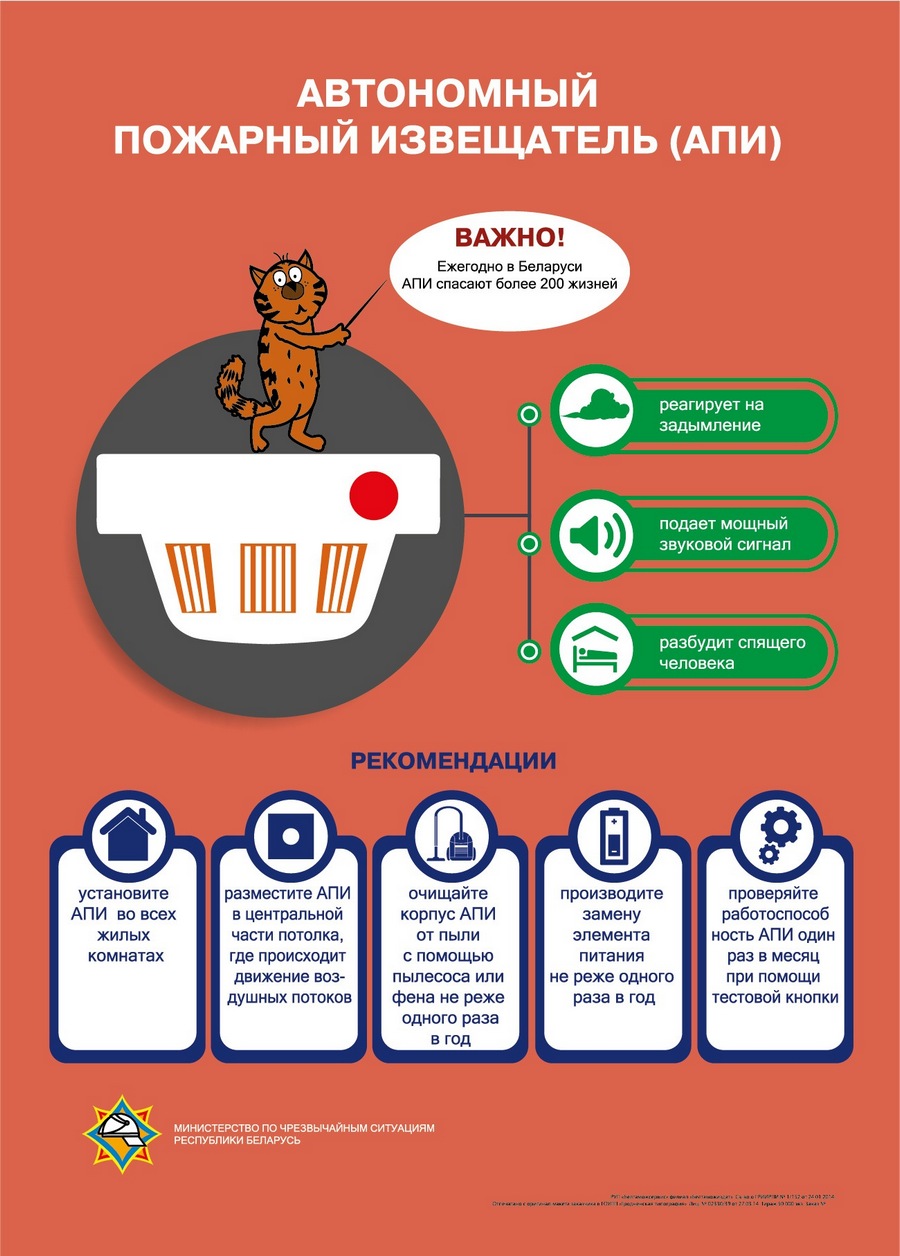 АПИ – это наиболее доступное средство, способное обезопасить людей и их жилье от страшных последствий пожара. Прибор реагирует на возникшее задымление, подавая мощный звуковой сигнал, услышать который может не только спящий человек, но и его соседи. Данное устройство неприхотливо к обслуживанию, менять батарейки (типа крона) и периодически очищать АПИ от пыли.