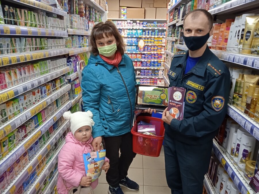 Представители МЧС напомнили посетителям магазина о недопустимости оставления детей одних без присмотра, предлагали присутствующим принять участие в различных конкурсах и даже примерить боевую одежду спасателя.