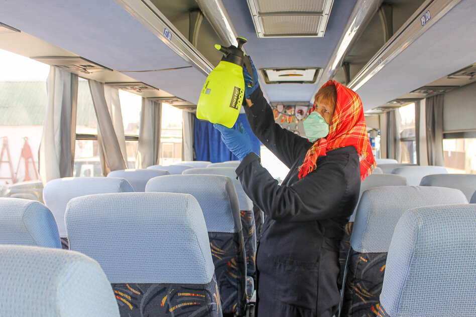 Як адзначыў вядучы інжынер па арганізацыі перавозак філіяла “Аўтапарк №14” Валерый Каранкевіч, у іх арганізацыі ў наяўнасці неабходны запас дэзынфіцыруючых сродкаў як для апрацоўкі спецтранспарту, так і для ўласнай гігіены работнікаў і пасажыраў. Касіры аўтастанцыі ў рабоце з кліентамі выкарыстоўваюць індывідуальныя медыцынскія маскі і пальчаткі, маюцца і дэзсродкі. Кожныя 2 гадзіны апрацоўваюцца крэслы ў зале чакання, дзвярныя ручкі, падаконнікі, мыецца падлога.