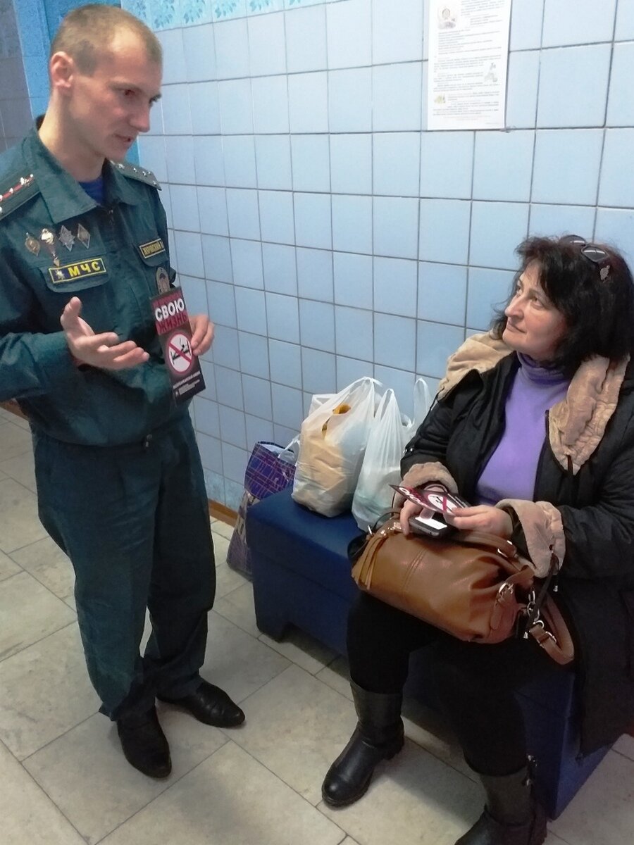 Курение в нетрезвом виде и небрежное обращение с огнем поистине очень серьезная проблема. Представители МЧС в своем выступлении рассказали присутствующим печальную статистику пожаров и гибели людей по вине неосторожного обращения с огнем при курении, особенно в состоянии алкогольного опьянения. Спасатели настоятельно рекомендовали отказаться от столь опасной привычки, а также посоветовали всем, кто проживает рядом с курильщиками и гражданами, ведущими асоциальный образ жизни быть начеку, напомнили номера службы спасения, а так же рекомендовали всем установить автономный пожарный извещатель.