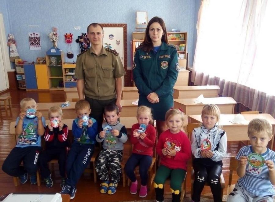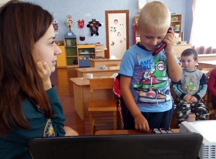 Работники МЧС демонстрировали воспитанникам серии мультфильма «Волшебная книга», научили малышей вызывать на помощь спасателей по телефонам «101» и «112», а также рассказали ребятам про «Пять шагов к спасению».