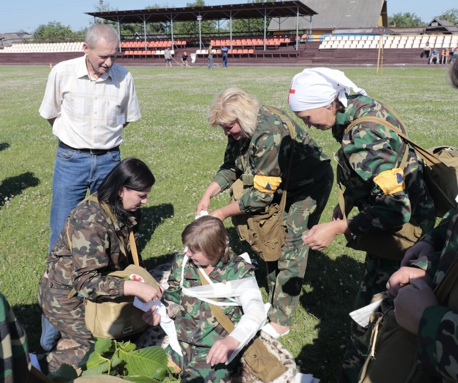 Затем мужские команды добровольных пожарных дружин соревновались в комбинированной эстафете. А в это время команды добровольных санитарных дружин и звеньев участвовали в отдельных соревнованиях на знания и умения действовать в экстремальных ситуациях.